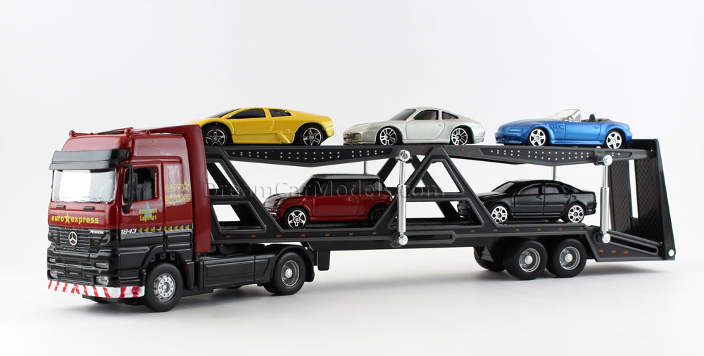 -Toy truck with auto carrier trailer for kids, children, young boys and girls.